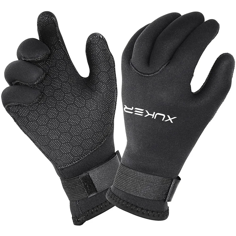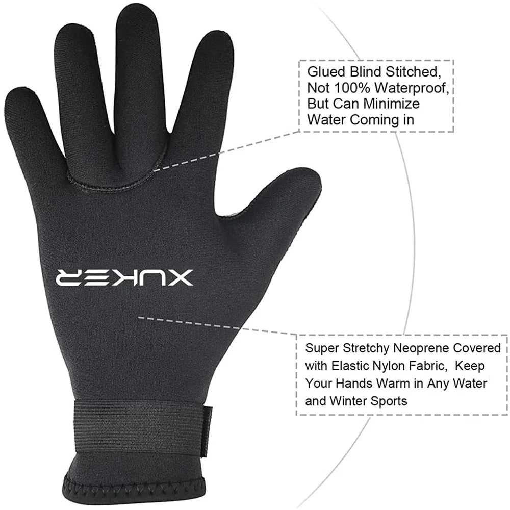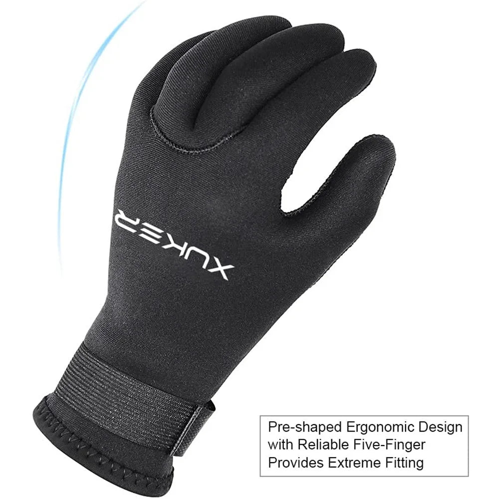 قفازات مائية، قفازات شتوية دافئة بخمسة أصابع مصنوعة من النيوبرين بسمك 3 مم و5 مم للغوص والغطس والتجديف وركوب الأمواج والتجديف بالكاياك والتجديف وصيد الأسماك بالرمح والتزلج على الجليد