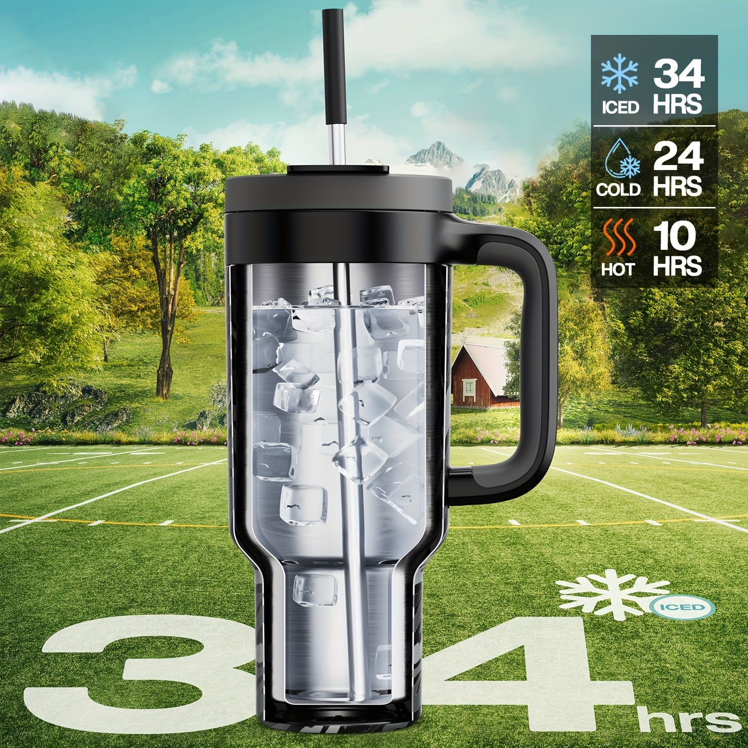 40oz Insulated Stainless Steel Tumbler with Dual Handles - Leakproof, PVC-Free, Perfect for Sports & Home Use