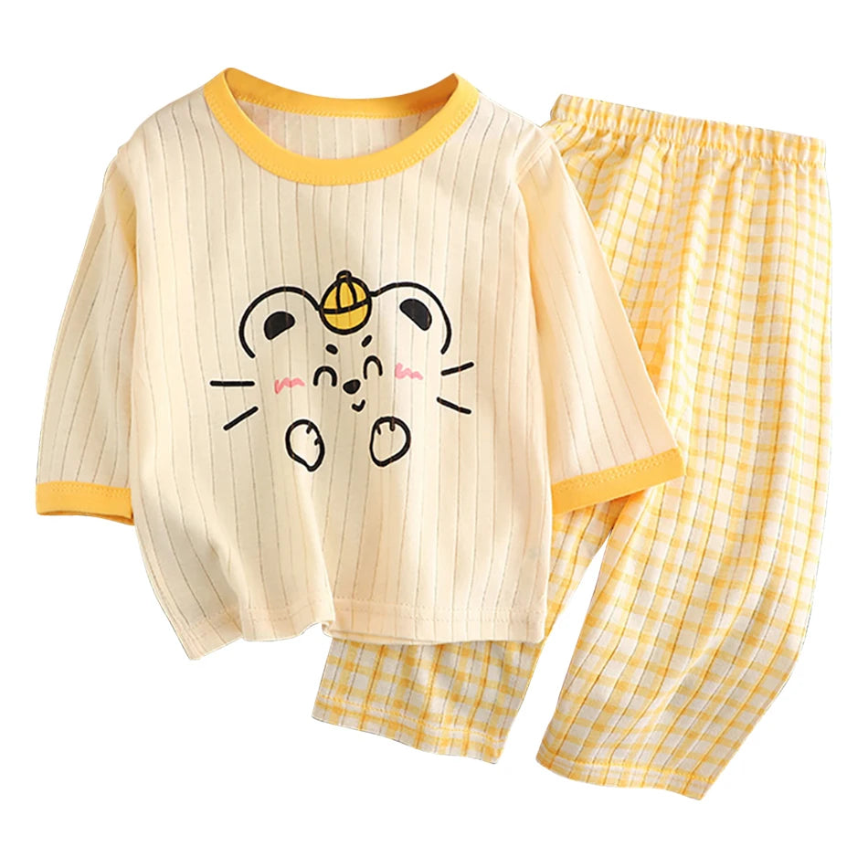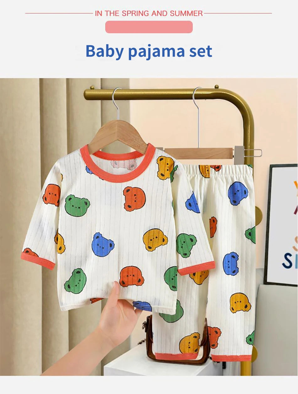طقم بيجامات صيفي لطيف ومريح للأطفال بأكمام طويلة وملابس نوم قطنية وغرف مكيفة