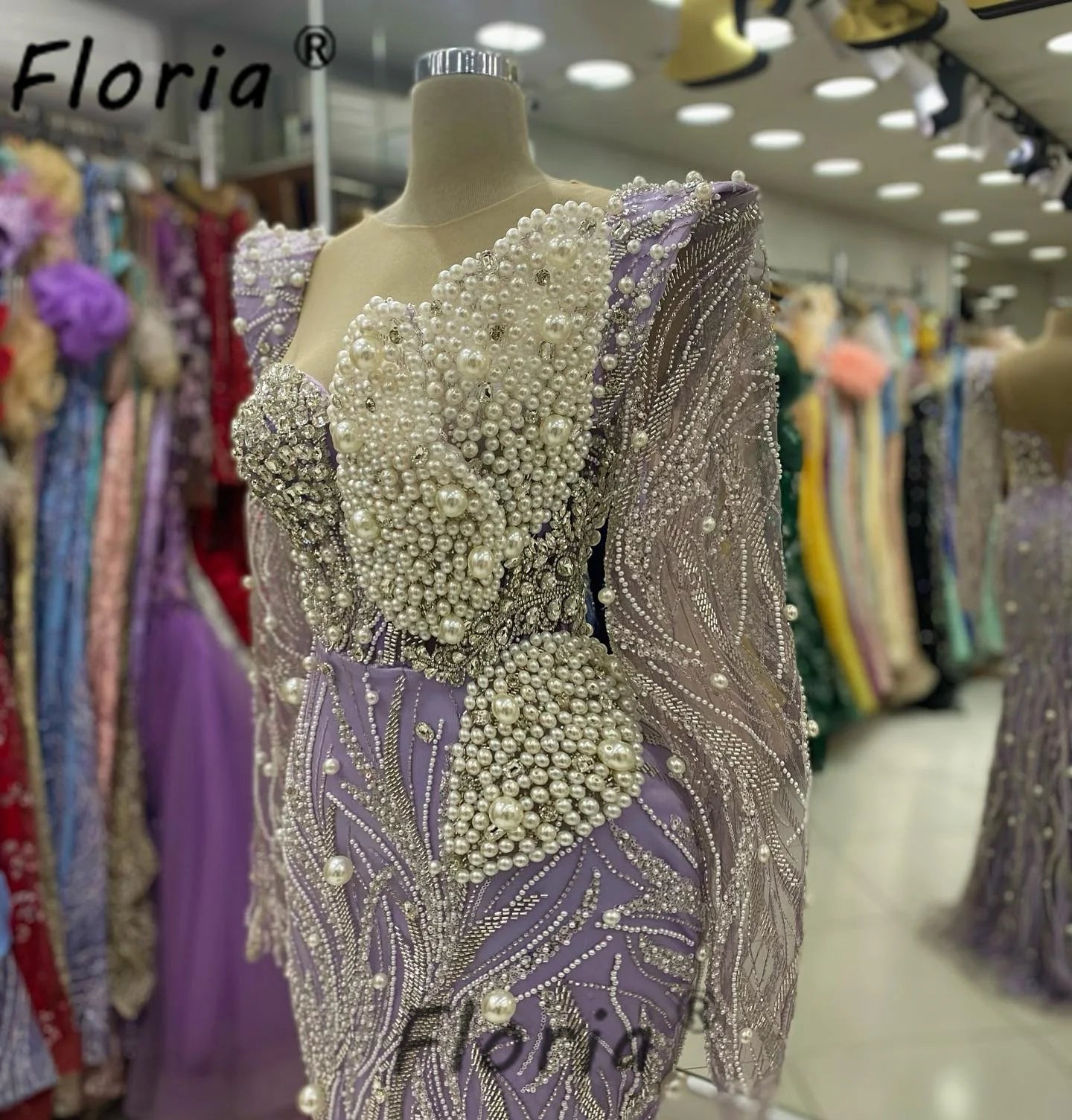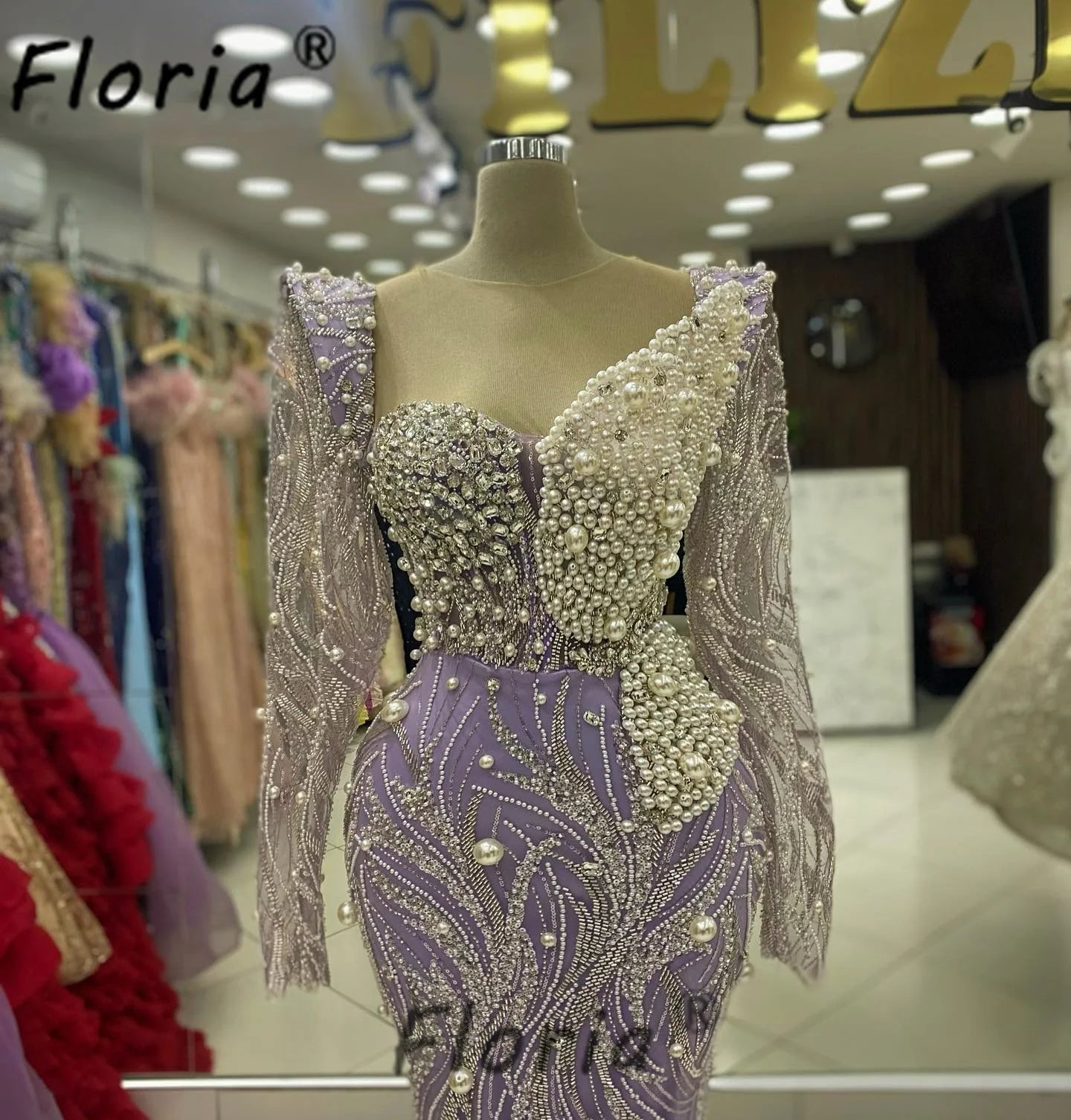 فستان حورية البحر الأنيق من اللؤلؤ الأرجواني للمشاهير، مزين بالترتر الكريستالي، فساتين سهرة رسمية لامعة