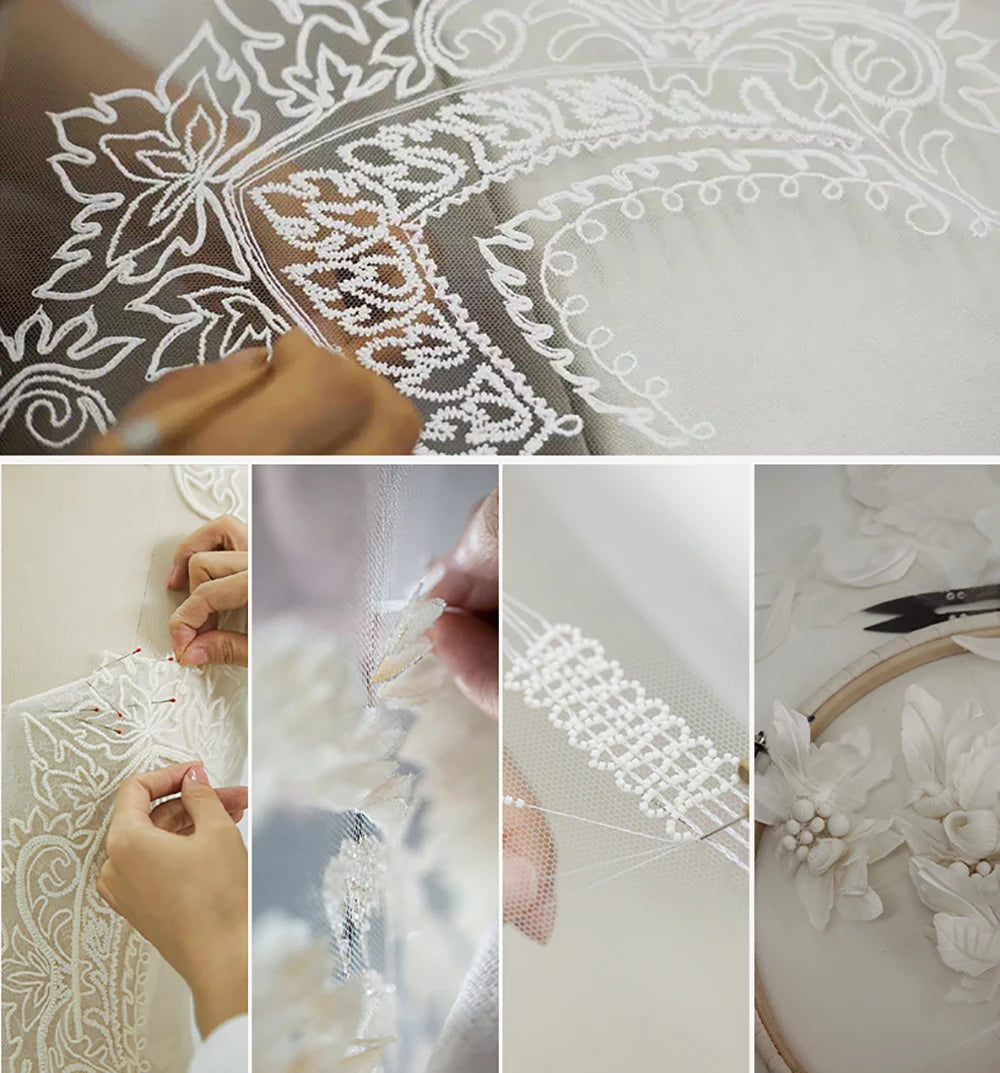 الديكور : خرز، كريستال، لؤلؤ، ترتر
