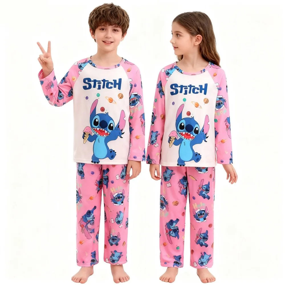 طقم بيجامات بأكمام طويلة بطبعة كرتونية للبنات - ملابس نوم وردية لطيفة من بيجامات ستيتش فيلز بيجامات نافيدينا ملابس نوم مريحة