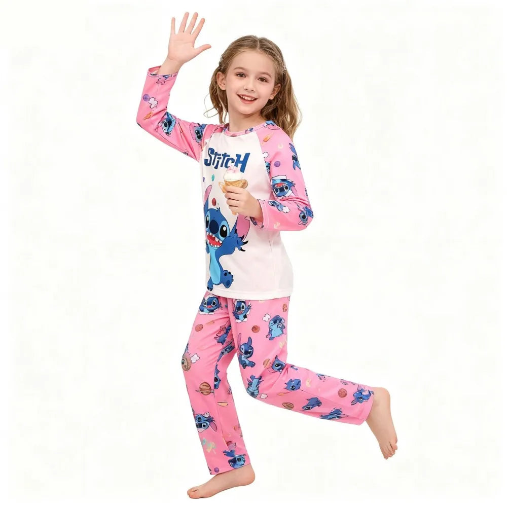 طقم بيجامات بأكمام طويلة بطبعة كرتونية للبنات - ملابس نوم وردية لطيفة من بيجامات ستيتش فيلز بيجامات نافيدينا ملابس نوم مريحة