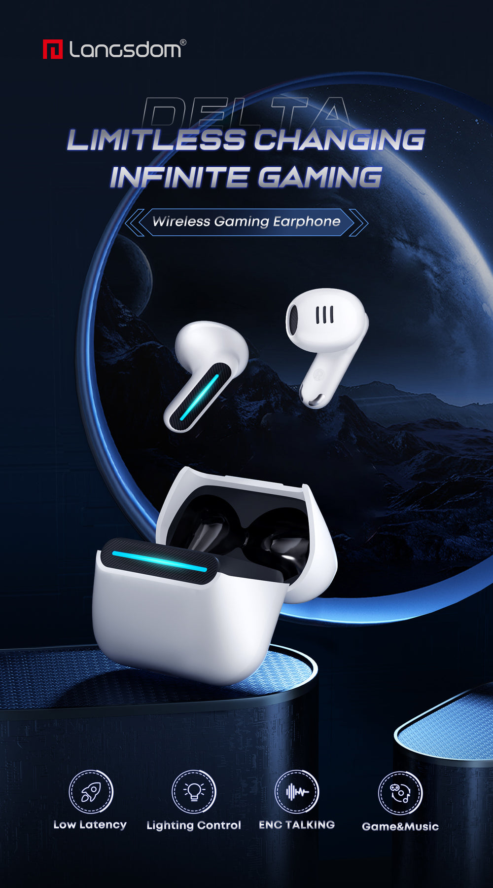 سماعات أذن لاسلكية Langsdom Delta ENC لتقليل الضوضاء مع زمن انتقال منخفض للغاية، ووضعين للألعاب أو الموسيقى