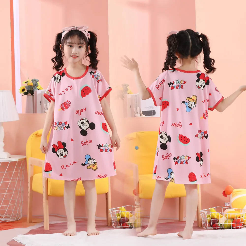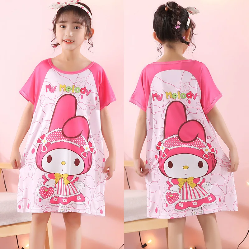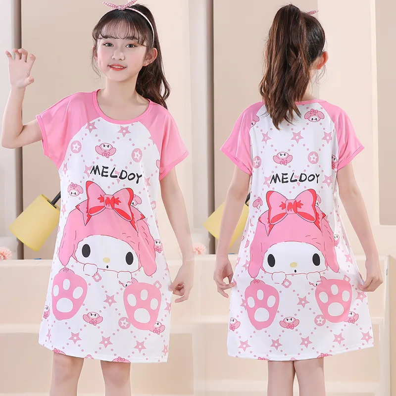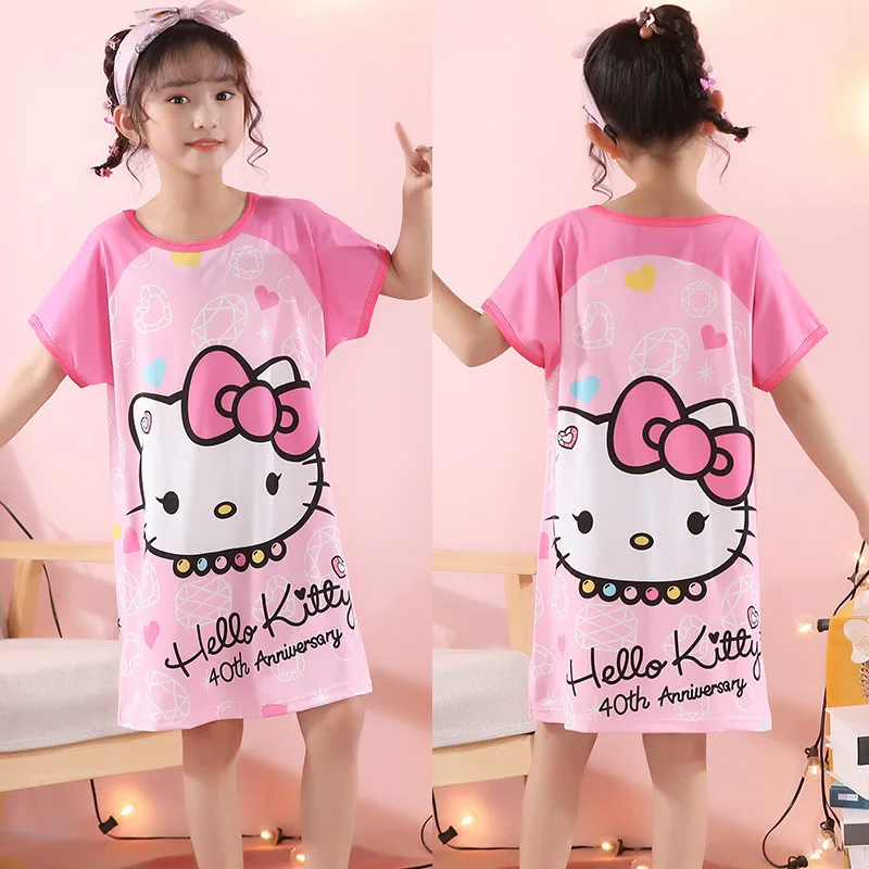 ملابس منزلية للأطفال من MINISO فستان نوم صيفي بأكمام قصيرة من Disney Hello Kitty Cat، بيجامات للبنات الصغار، ثوب نوم، ملابس نوم