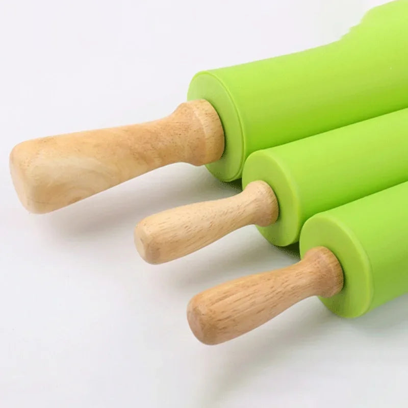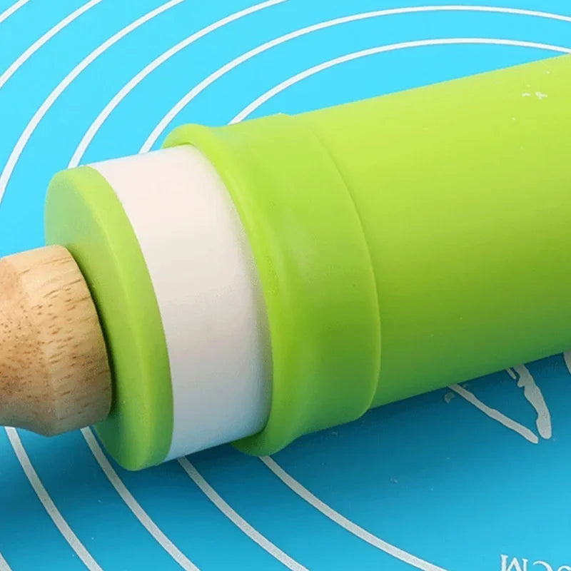 √ بكرة سيليكون دوارة ومقبض خشبي مريح: بدون الكثير من الضغط، يمكن للنواة الصلبة والمقبض المريح أن يتحمل الضغط.