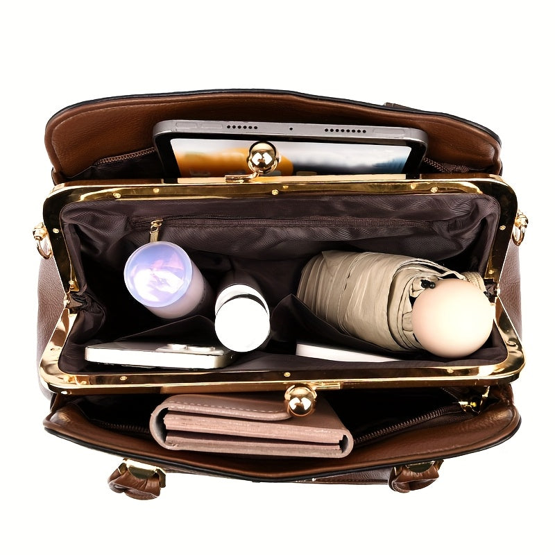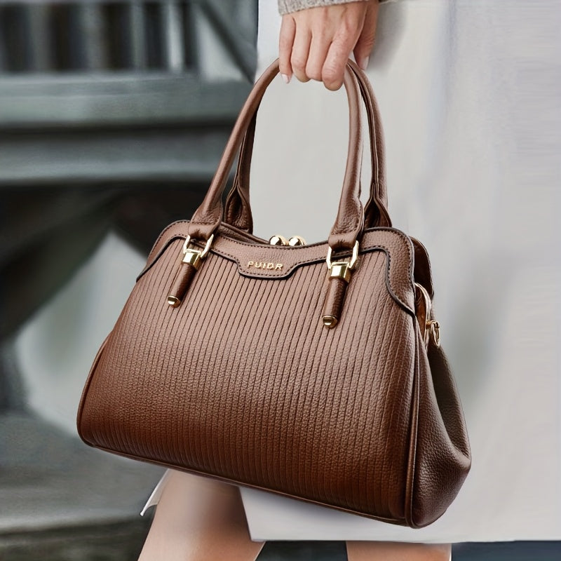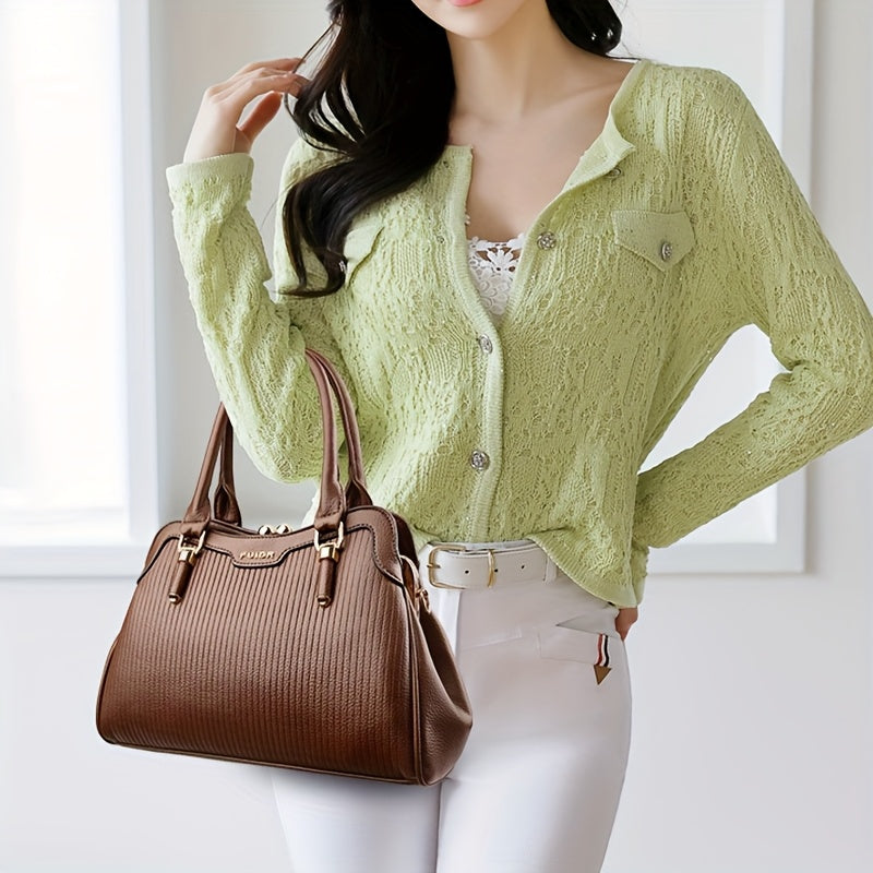 OGEHUAFEE 's Quilted Handbag - Elegant Multi-Layer French-Inspired Quilted Striped (Brown/Beige/Green/Black) Button Closure, Golden-Tone Hardware, Detachable Strap & Nylon - Dress Handbag for, Wedding,