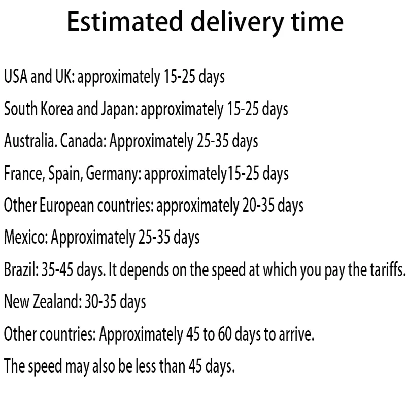 دول أخرى: يستغرق الوصول من ٤٥ إلى ٦٠ يومًا تقريبًا. قد تكون السرعة أقل من ٤٥ يومًا.