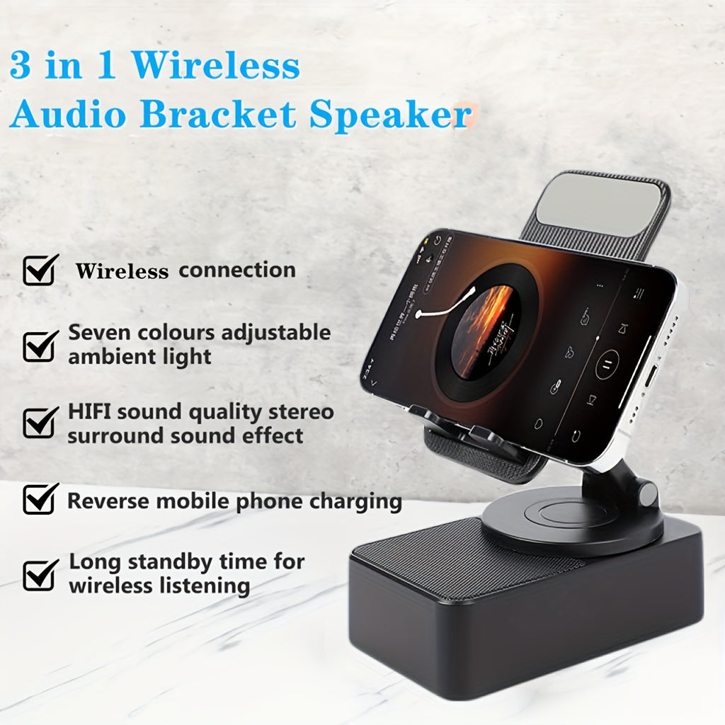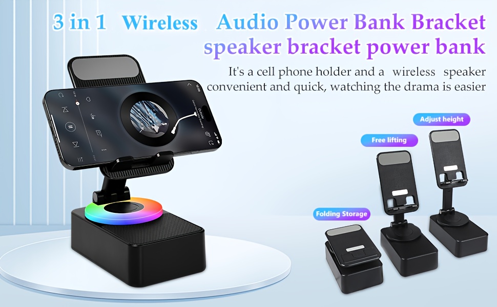 Multifunctional All-in-one Design: The bracket speaker combines a wireless speaker with stand and a powerful mobile phone holder, enhancing your multimedia experience with one multifunctional device