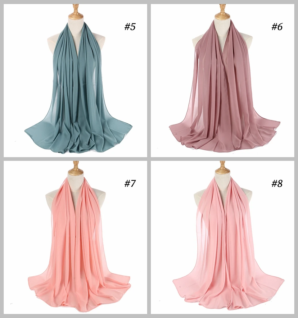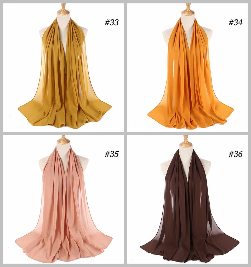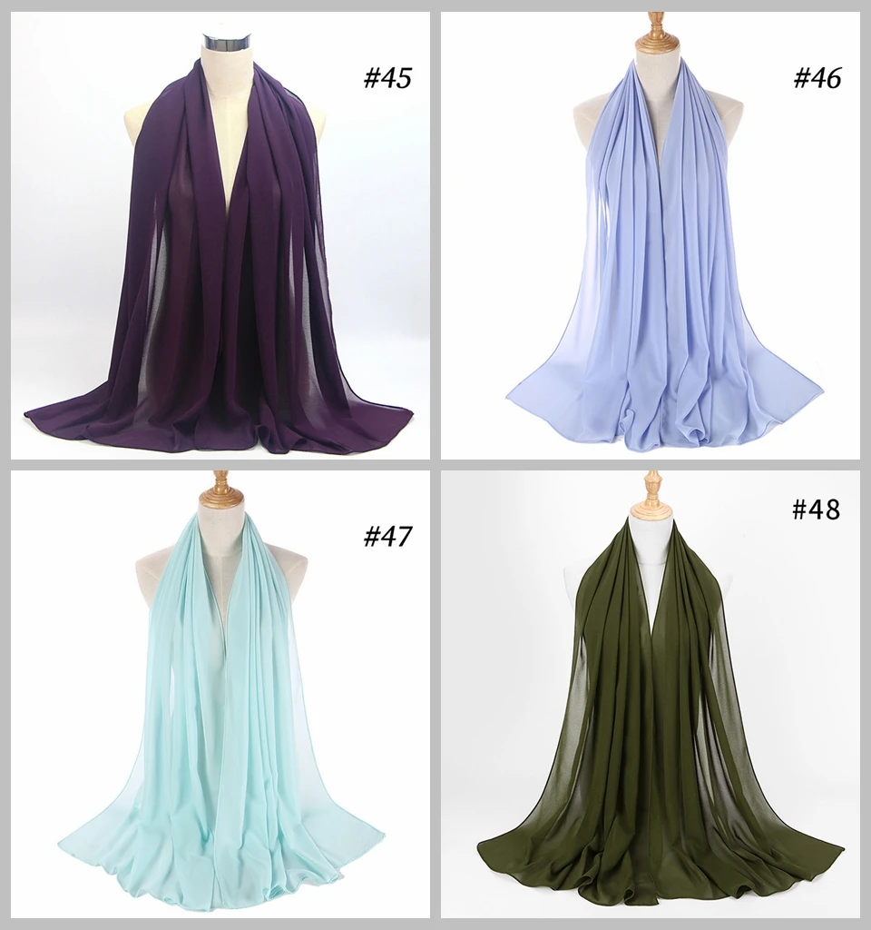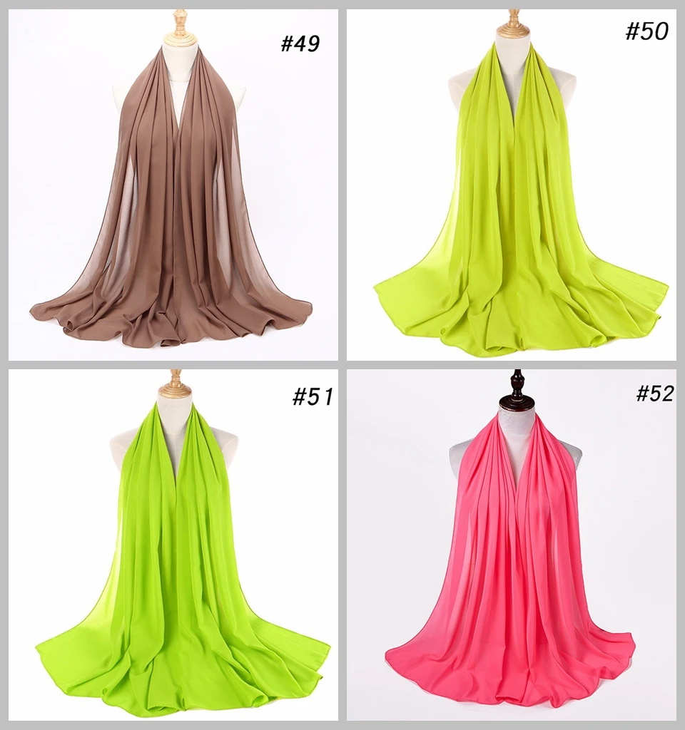 HUISHI Head Scarf Women Bubble Chiffon Plain Scarf Hijab Women Wrap Solid Color Shawls Headband Muslim Hijabs scarves 61 colors