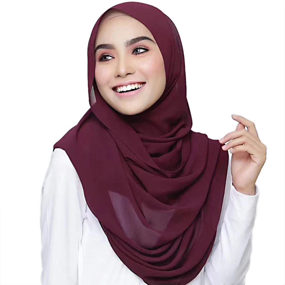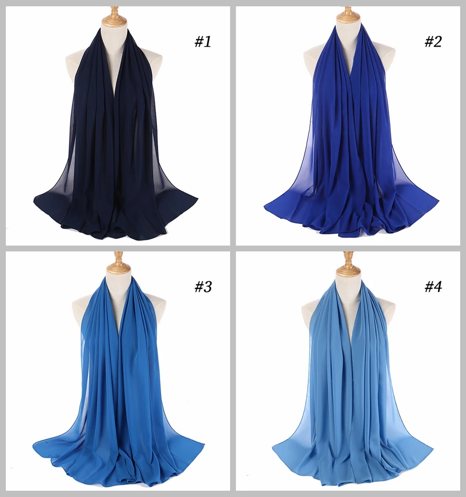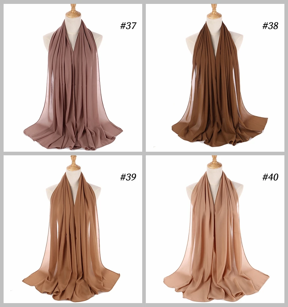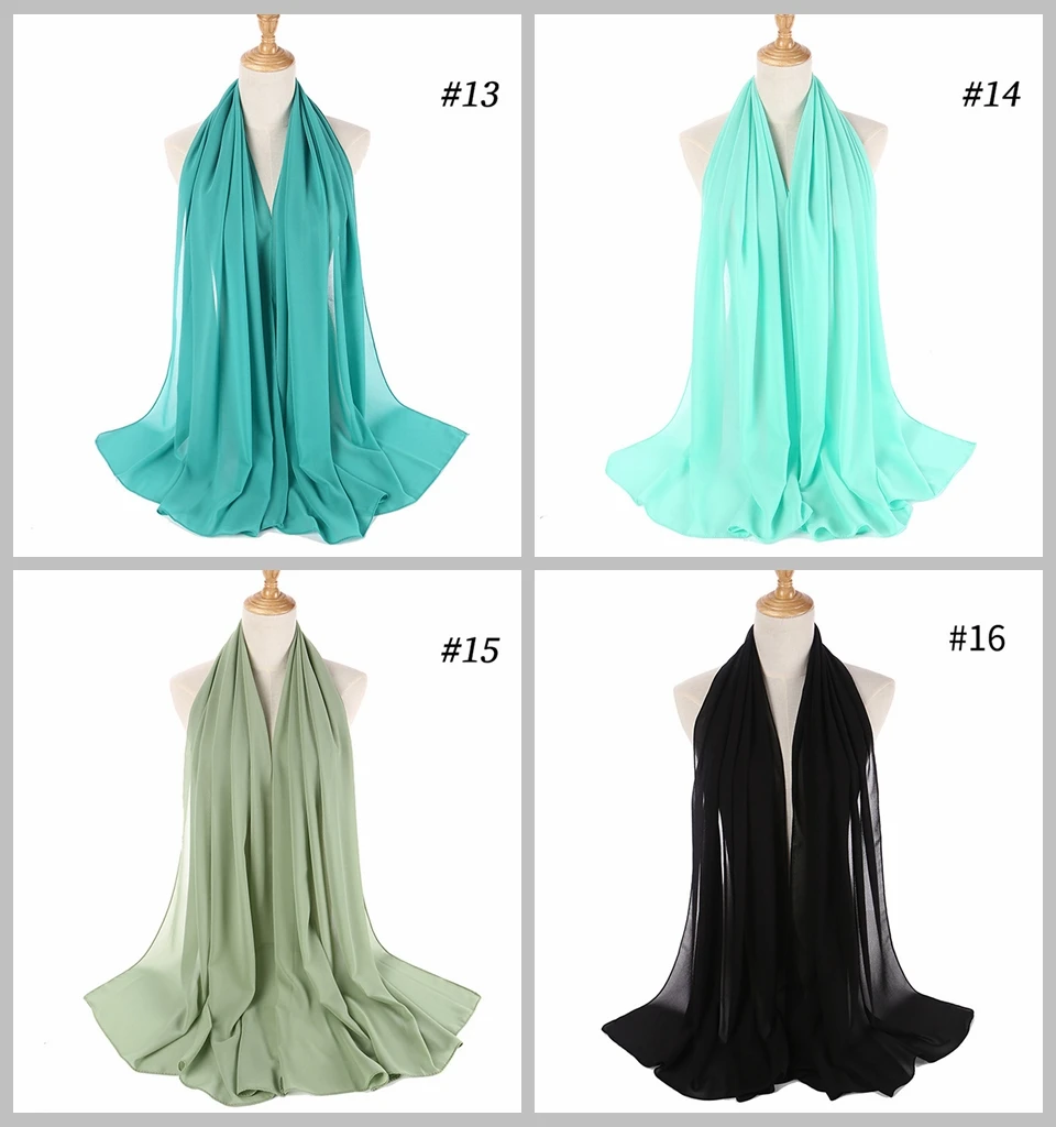 HUISHI Head Scarf Women Bubble Chiffon Plain Scarf Hijab Women Wrap Solid Color Shawls Headband Muslim Hijabs scarves 61 colors