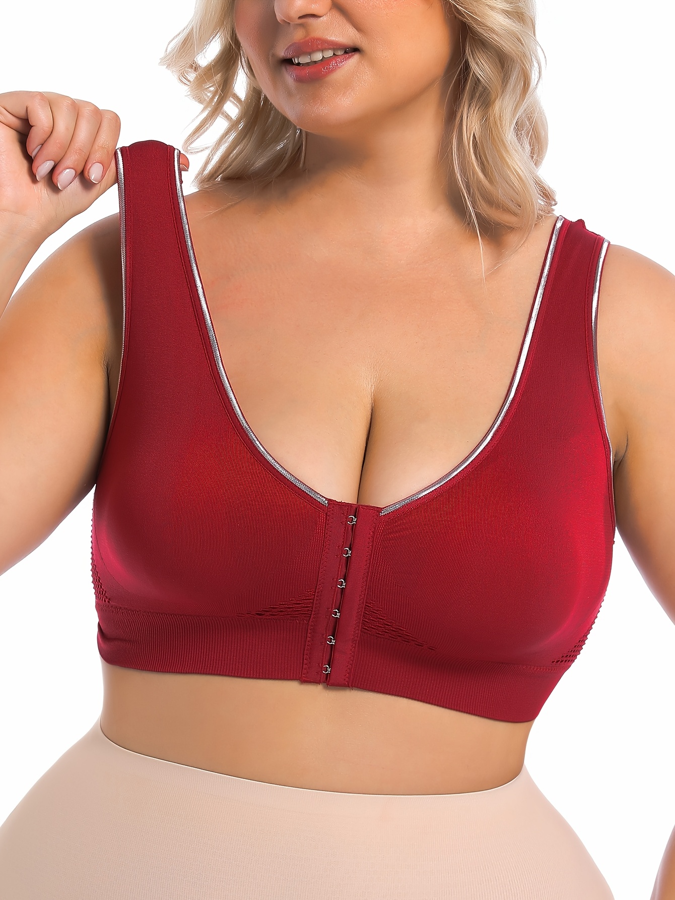 3pcs Women'S Plus Size High Elasticity Sports Bras - Seamless No Underwire Comfortable Bras with Front Buckle Adjustable, Suitable for All-Year Daily and Sports Activities